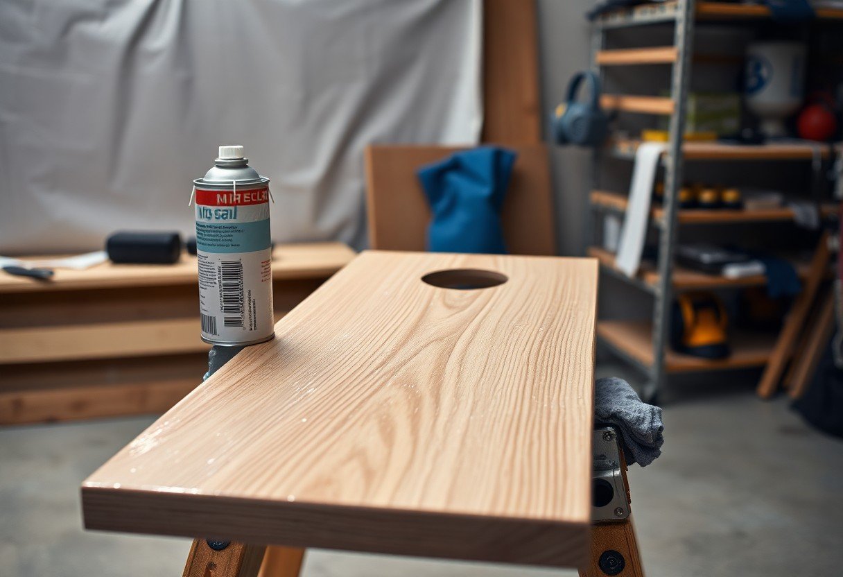 When sealing, you should lock paint with 2-4 thin coats of clear sealer, sanding lightly with 220-320 grit between coats and allowing 2-6 hours dry time per coat; full cure takes ~72 hours. Use a water-based polyurethane for indoor play or a marine-grade spar varnish for outdoor boards to add UV protection. Painting Cornhole Boards- a beginner’s guide – Poplolly Co. offers step examples. Wear a respirator and eye protection when spraying, and note that oil-based finishes yellow over time.