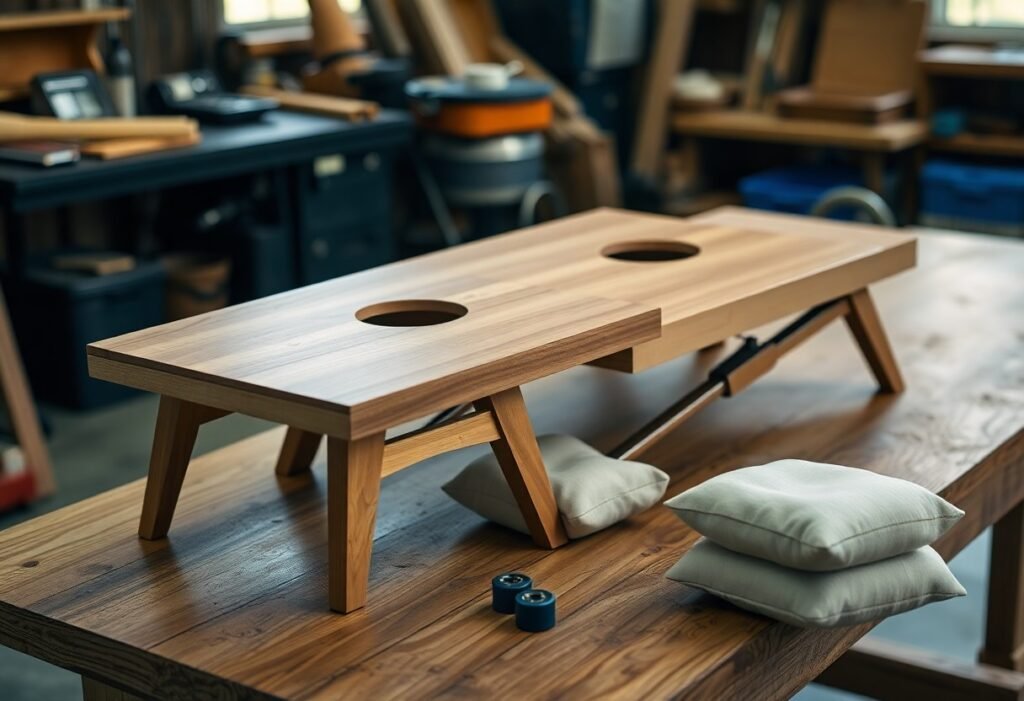 Upgrade to 1/2″ exterior plywood or 3/4″ pine for the tops, countersink and use stainless steel 1/4″ bolts, seal cut edges with thin epoxy, and fit soft rubber feet to reduce wear; sanding between coats with 220 grit extends finish life. Apply three coats of marine varnish or two coats of oil-based polyurethane for UV and moisture resistance, and store your portable cornhole set indoors when not in use. Perceiving the durability gains after these steps helps you decide which upgrades are worth the cost.