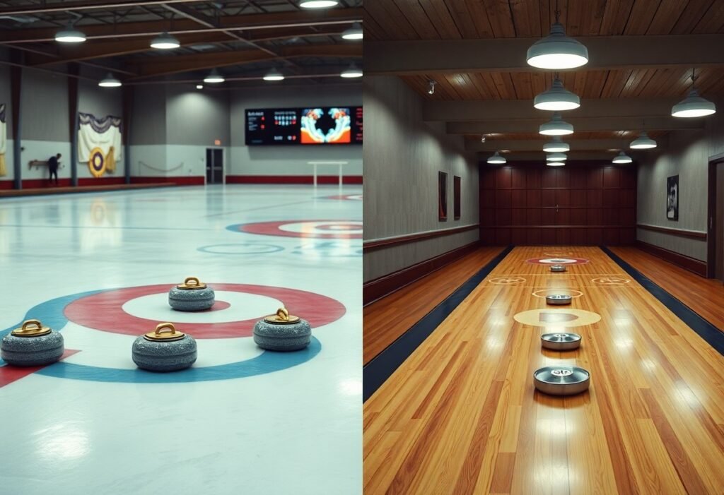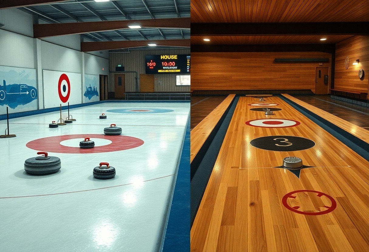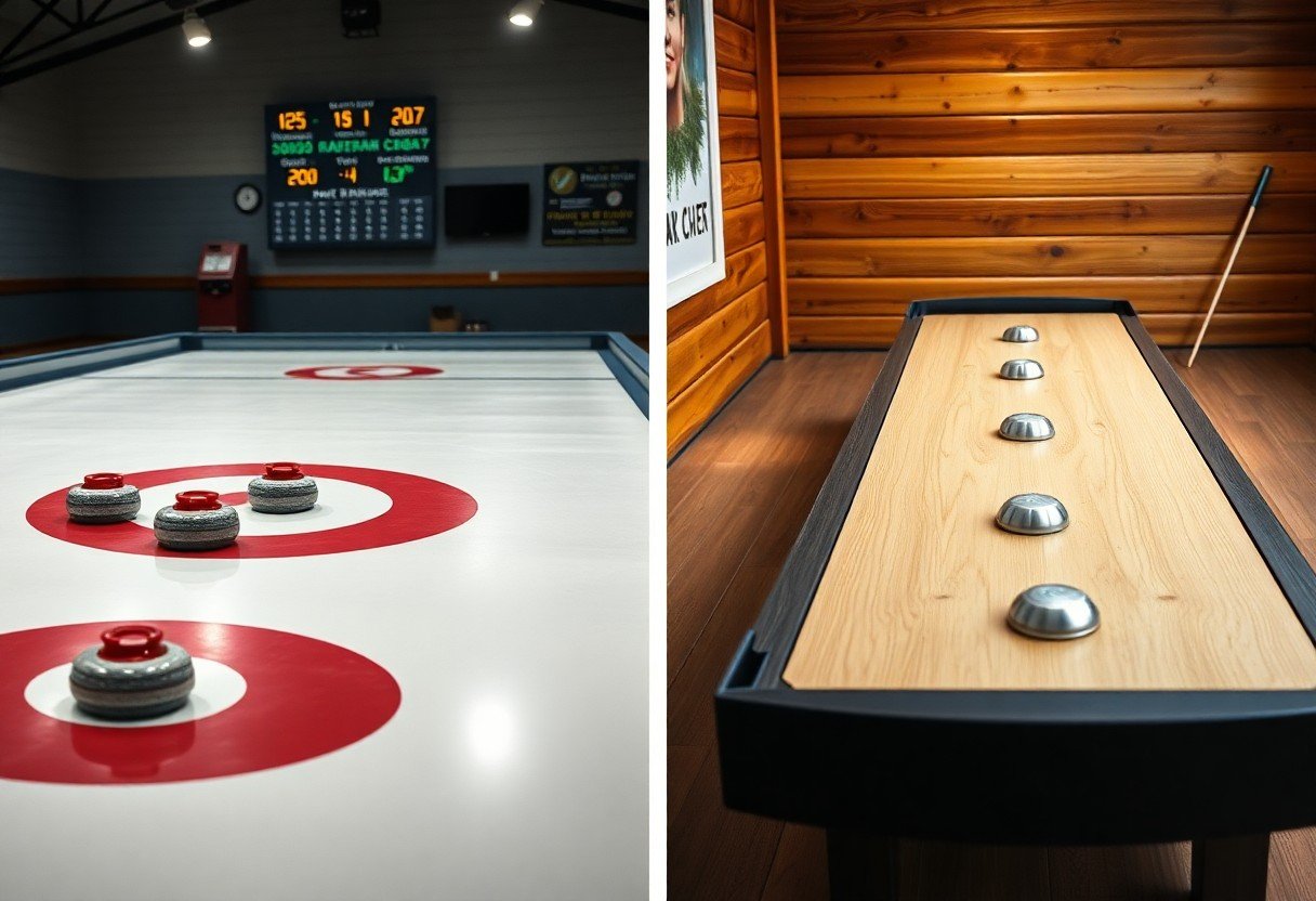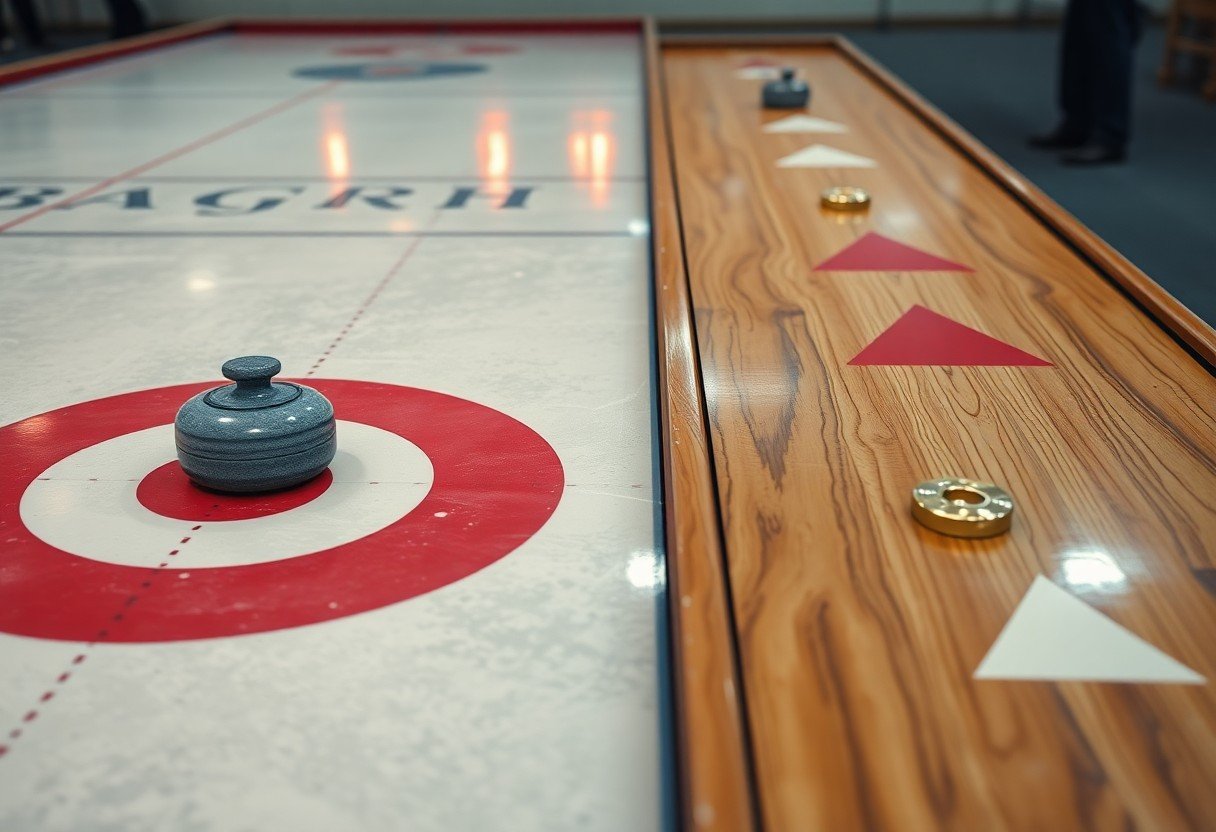 Following this comparison, you can see curling and shuffleboard differ in surface, equipment, and strategy: curling demands sweeping, weight control, and team coordination on ice, while shuffleboard emphasizes finesse, cue technique, and table positioning on a smooth court. Your choice depends on whether you prefer physical teamwork and tactical shot-making or a quieter, precision-based tabletop game.